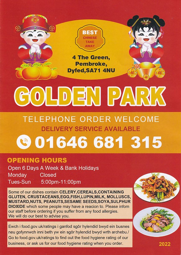 Menu Website of Golden Park, Pembroke. New Menu 14 Nov 2022 (If you see old menu, please "Refresh" your phone) |